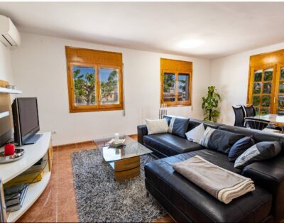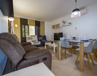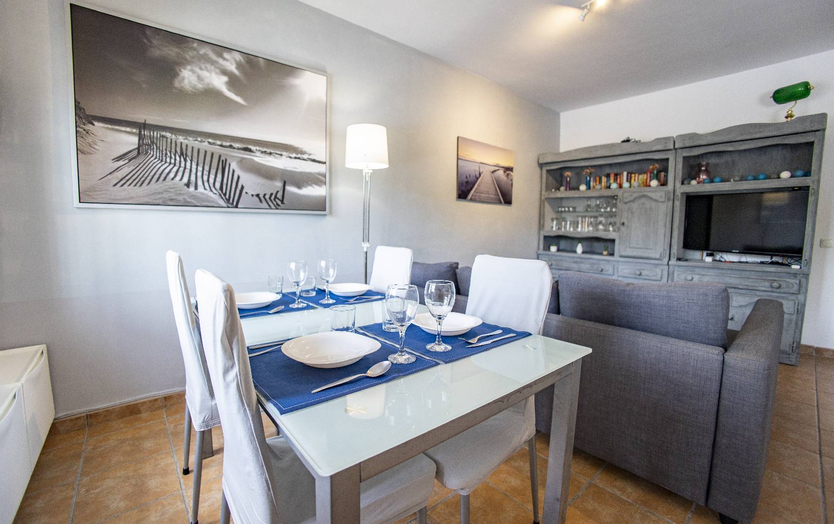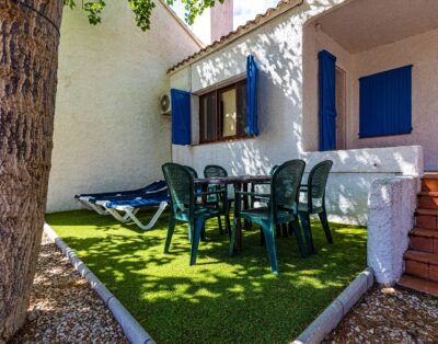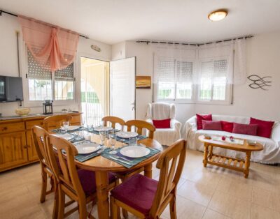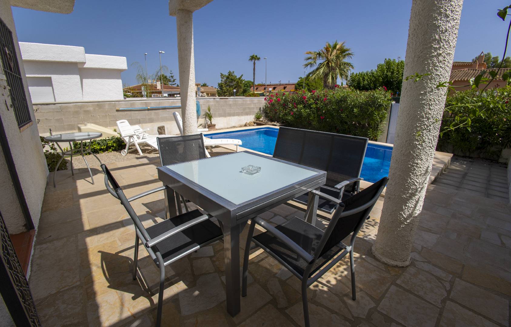 El chalet semiadosado El Garxal, con capacidad para 4 personas se encuentra unos 450m del paseo marítimo, está completamente vallado. La entrada para el aparcamiento de su vehículo se encuentra en la parte trasera de la vivienda. El acceso peatonal es de material antideslizante y se encuentra justo al lado de la piscina privada que dispone de una escalera de obra. A través de la terraza cubierta equipada con mesa y sillas de terraza se entra a la vivienda.