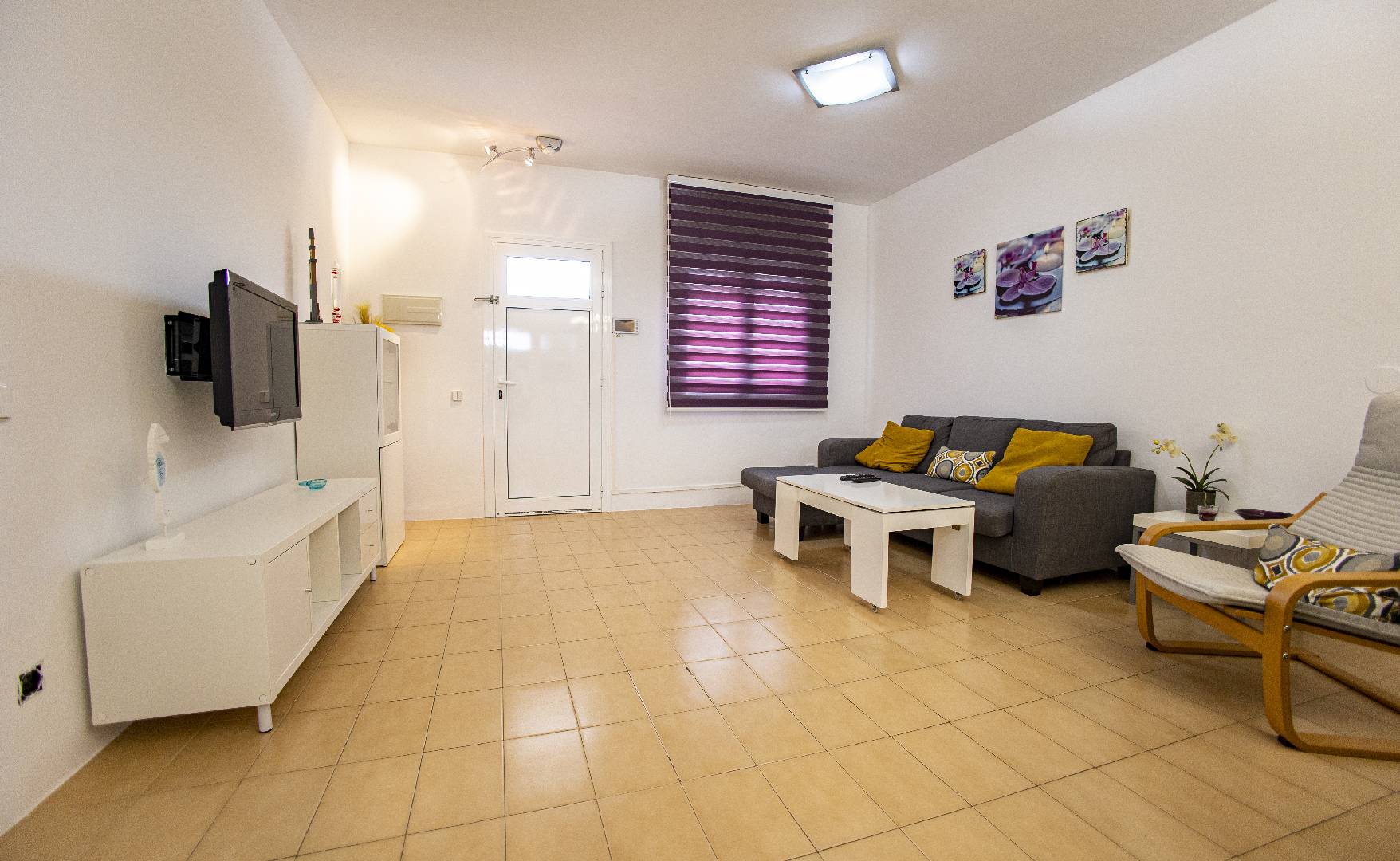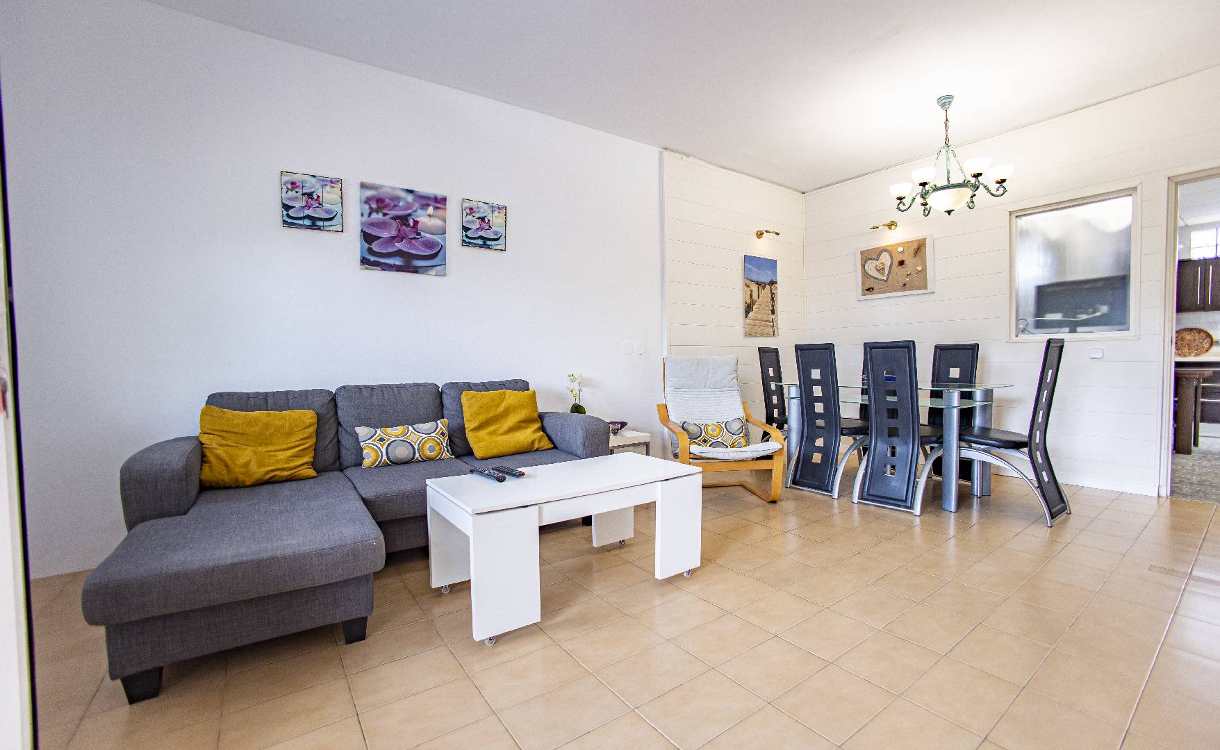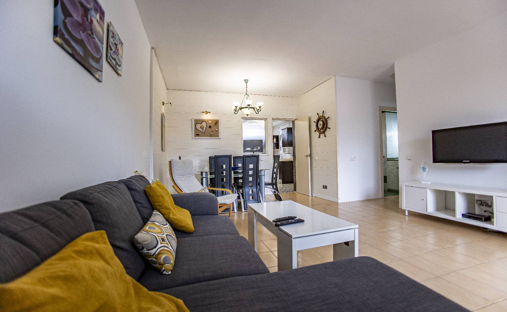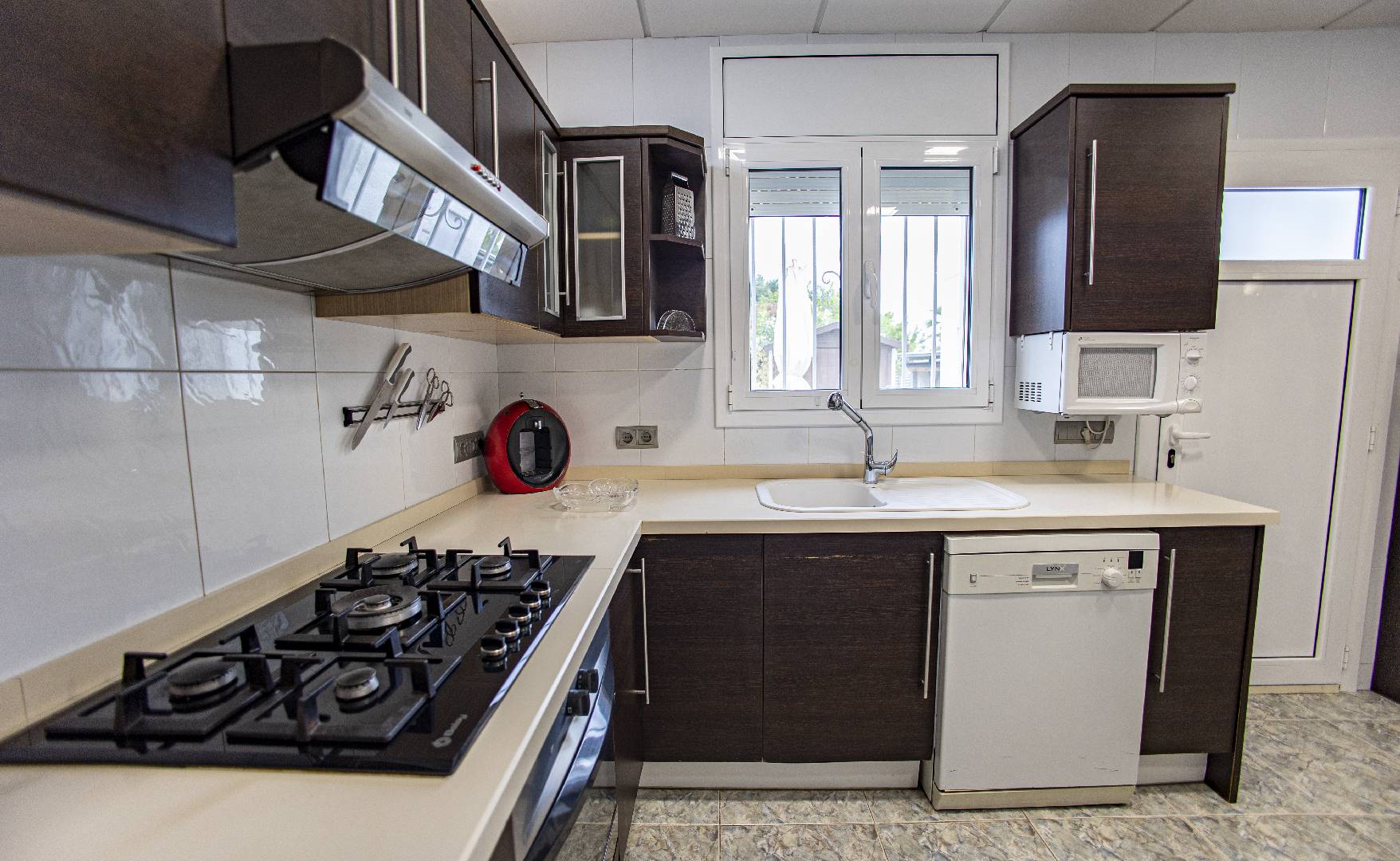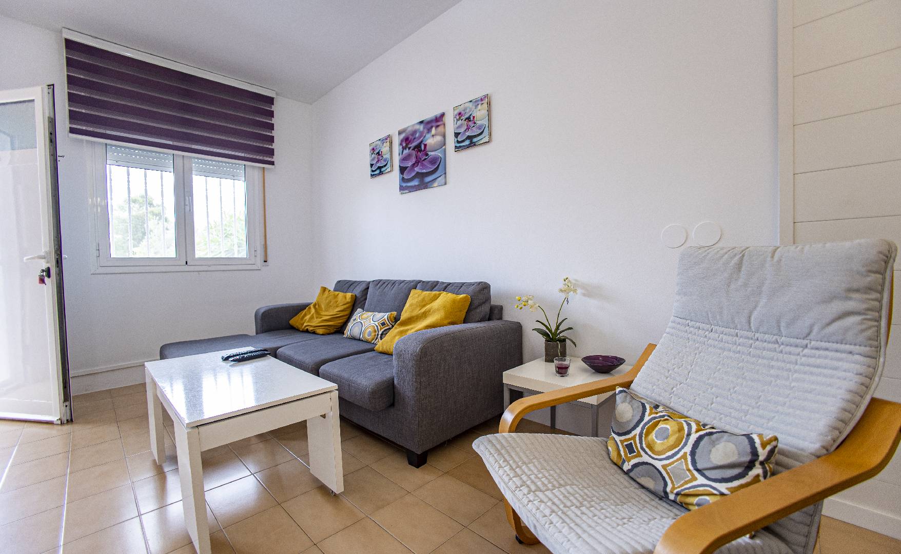 El chalet Maricel, es un alojamiento semiadosado con capacidad para 4 personas, se encuentra a unos 40m del paseo marítimo, muy cerca del supermercado y de la farmacia. El Chalet Maricel está completamente vallado, en beneficio de su mascota. La entrada peatonal cimentada es amplia, para que puedan aparcar un vehículo en la parcela, debajo de la sombra de un árbol. El alojamiento dispone de un amplio almacén por si desean guardar las cosas de la playa, material de pesca o el material de deporte acuático. En uno de los dos laterales hay una pequeña zona ajardinada y en el otro lateral dispone una pequeña terraza elevada de madera con la compañía de una pequeña fuente decorativa y un joven Olivo. La terraza frontal semicubierta dispone de una marquesina que ofrece sombra en los días más soleados, la terraza está equipada con mobiliario diverso, una mesa con 4 sillas para poder disfrutar de las comidas, unos bancos de madera para poder gozar de la lectura o del sol. La barbacoa de obra está situada a pocos metros de la terraza. Entrando a la casa se encontrará directamente en el amplio salón-comedor que ofrece sitio para 6 personas con sofá, 1 sillón, mesa, sillas, mueble de tv/sat y vitrina. Desde el salón se accede al pequeño pasillo que lleva a mano derecha a la habitación de matrimonio con su gran armario ropero, al fondo a la habitación con 2 camas individuales y un pequeño armario empotrado y a la izquierda al aseo con ducha. A continuación del comedor se encuentra una gran cocina independiente con una mesa y 4 sillas, la cocina está equipada con encimera de gas, horno eléctrico, lavavajillas, microondas, cafetera Dolce Gusto y otra italiana. La cocina dispone de una amplia despensa con lavadora. Desde la de la cocina hay una puerta que da acceso al jardín trasero que también dispone de muebles de tarraza y césped artificial. Es una zona con más intimidad.