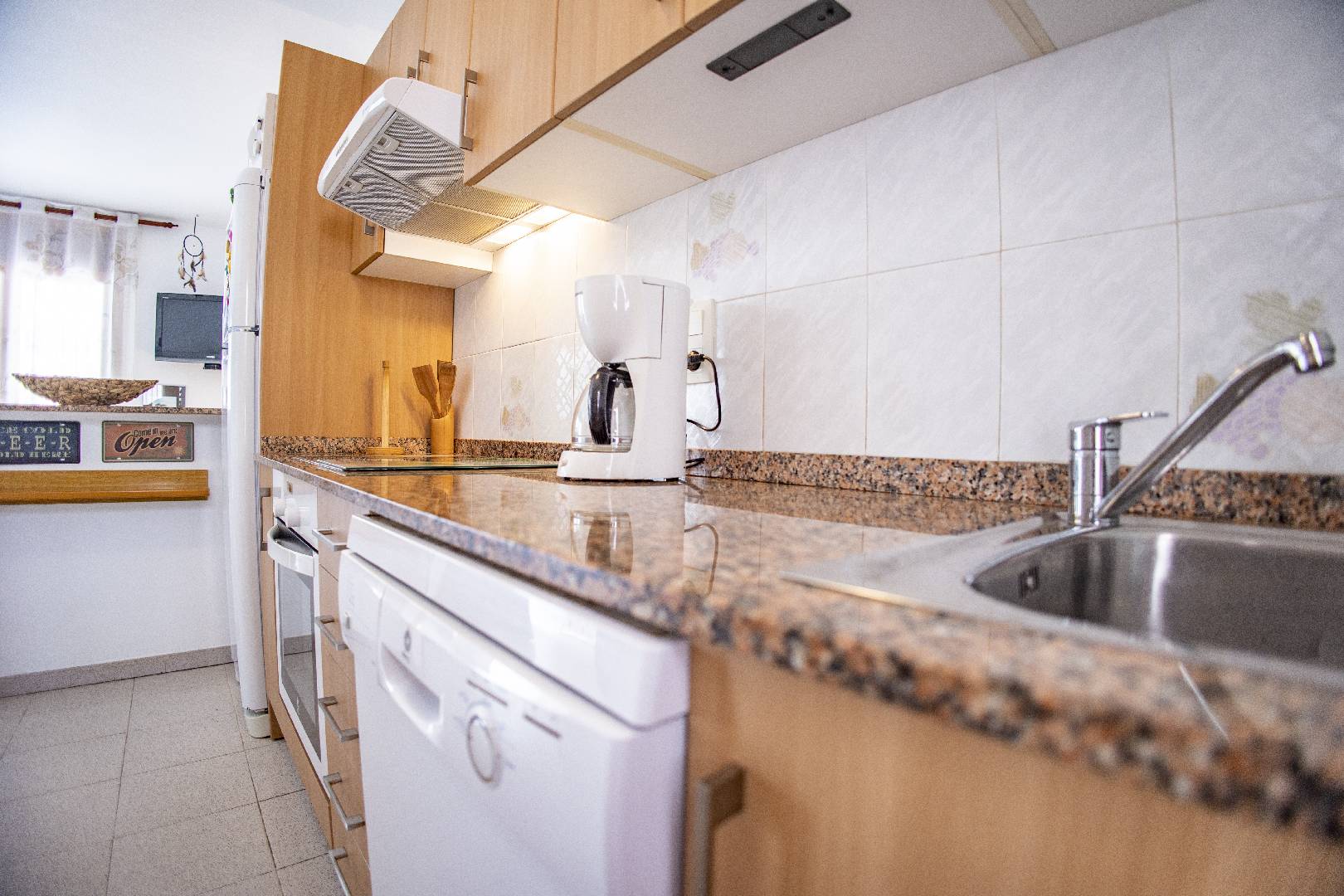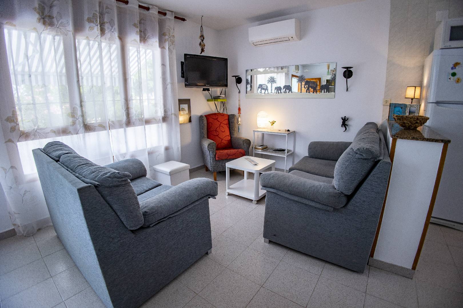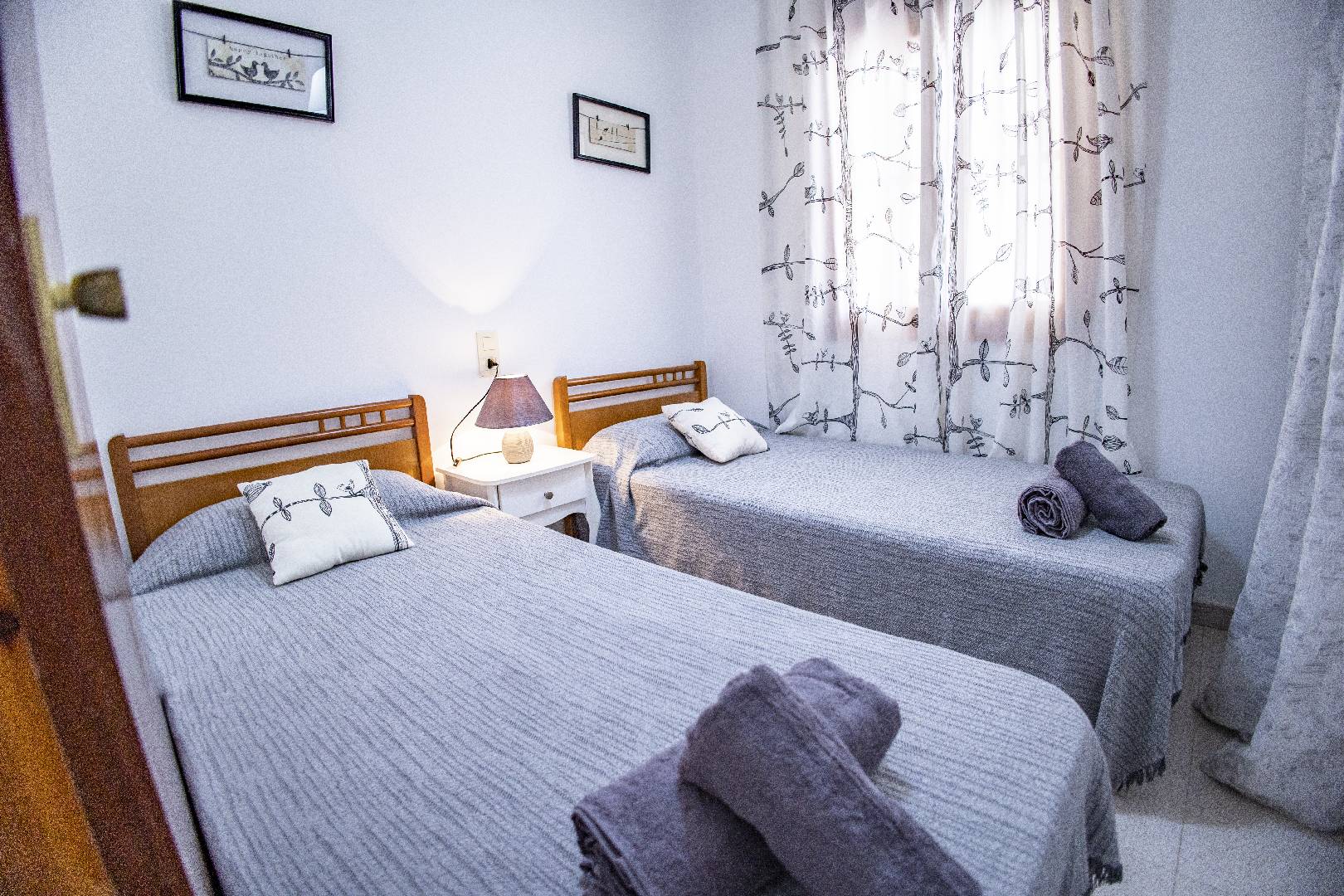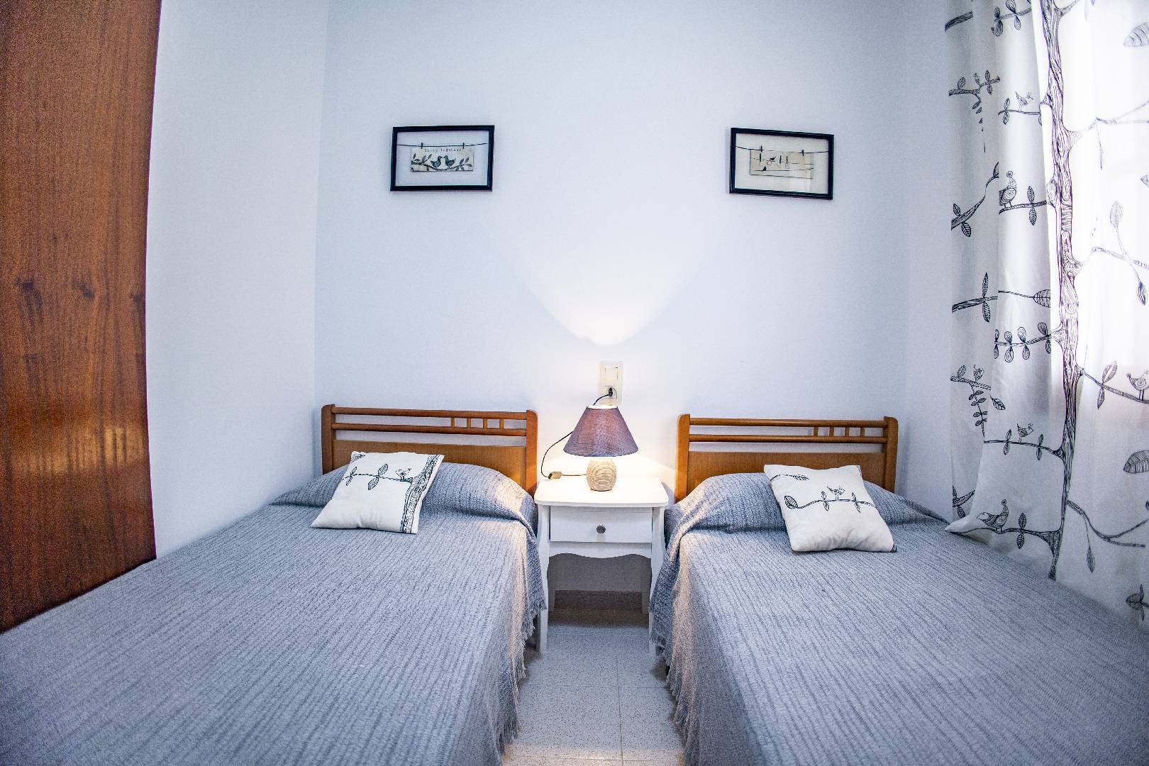 A su izquierda se encuentra zona del comedor con una mesa y sillas para 4 personas, televisión con satélite y aire acondicionado, cuyo uso es opcional. Desde la cocina americana, que está completamente equipada con todos los utensilios necesarios de cocina: vajilla, vitrocerámica, lavavajillas, microondas, etc.; se accede al lavadero/trastero, y de allí a la terraza trasera donde encontrara la piscina privada con zona de barbacoa. Desde el salón comedor, siguiendo el pasillo se encuentra el aseo con ducha recientemente reformado; el dormitorio con 2 camas individuales y al fondo, la habitación con cama de matrimonio. Ambos dormitorios disponen de armarios empotrados. El Chalet dispone de un pequeño solárium en la terraza superior donde podrá tomar el sol en tranquilidad. Todas las ventas disponen de rejas de seguridad y mosquiteras.