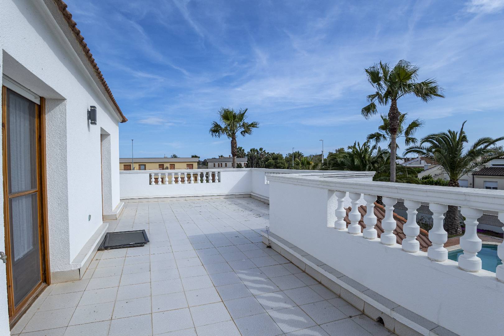 La Villa Riu es un alojamiento independiente, con capacidad para 10 personas se encuentra a unos 250 m del Paseo Marítimo y está completamente vallado. Dispone de una zona amplia donde se pueden estacionar hasta 4 coches, una de las plazas debajo de un cobertizo, el suelo es de piedra natural exceptuando las zonas verdes ajardinadas. A través de la gran terraza elevada y cubierta se accede a la casa.